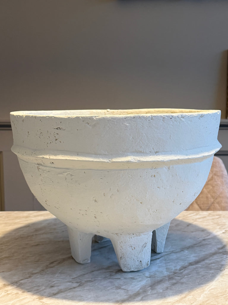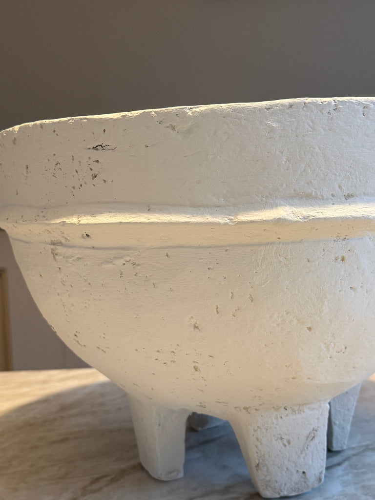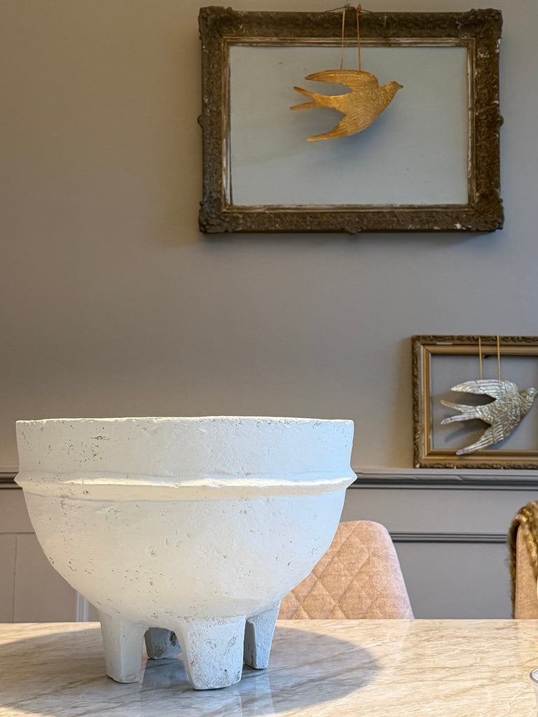 Schaal op voetjes van papier mache , hier kan uiteraard geen water in.