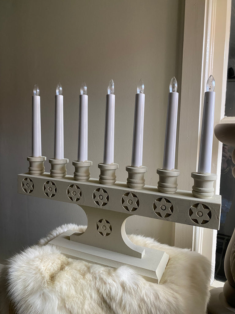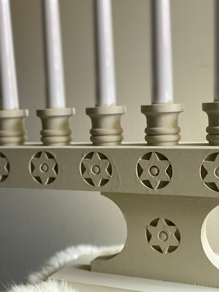 Prachtige houten Menora een kandelaar met 7 kaarsen.