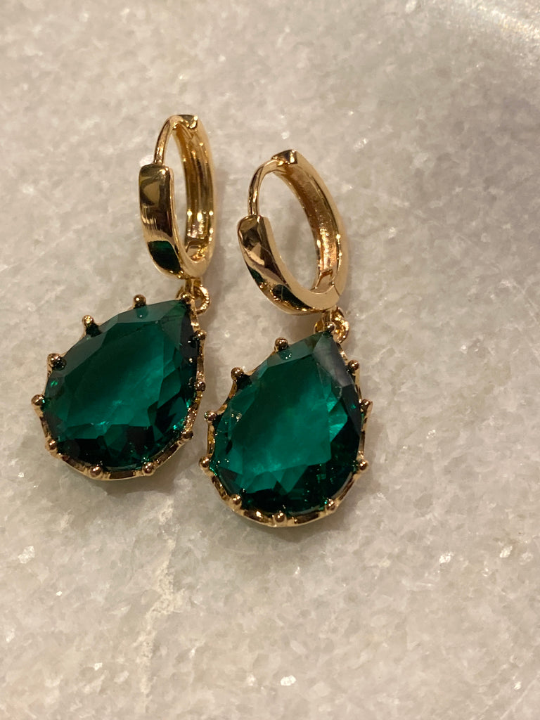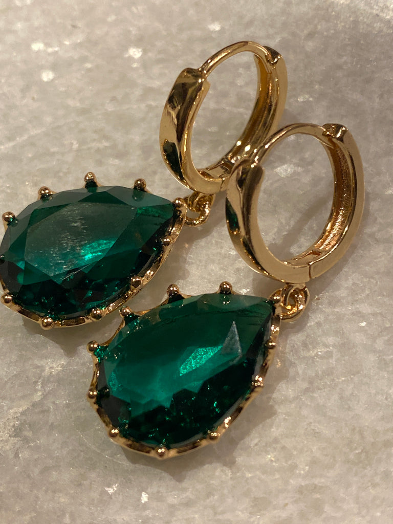 Prachtige creool met een groene Crystal druppel mooi ingelegd in goldplated