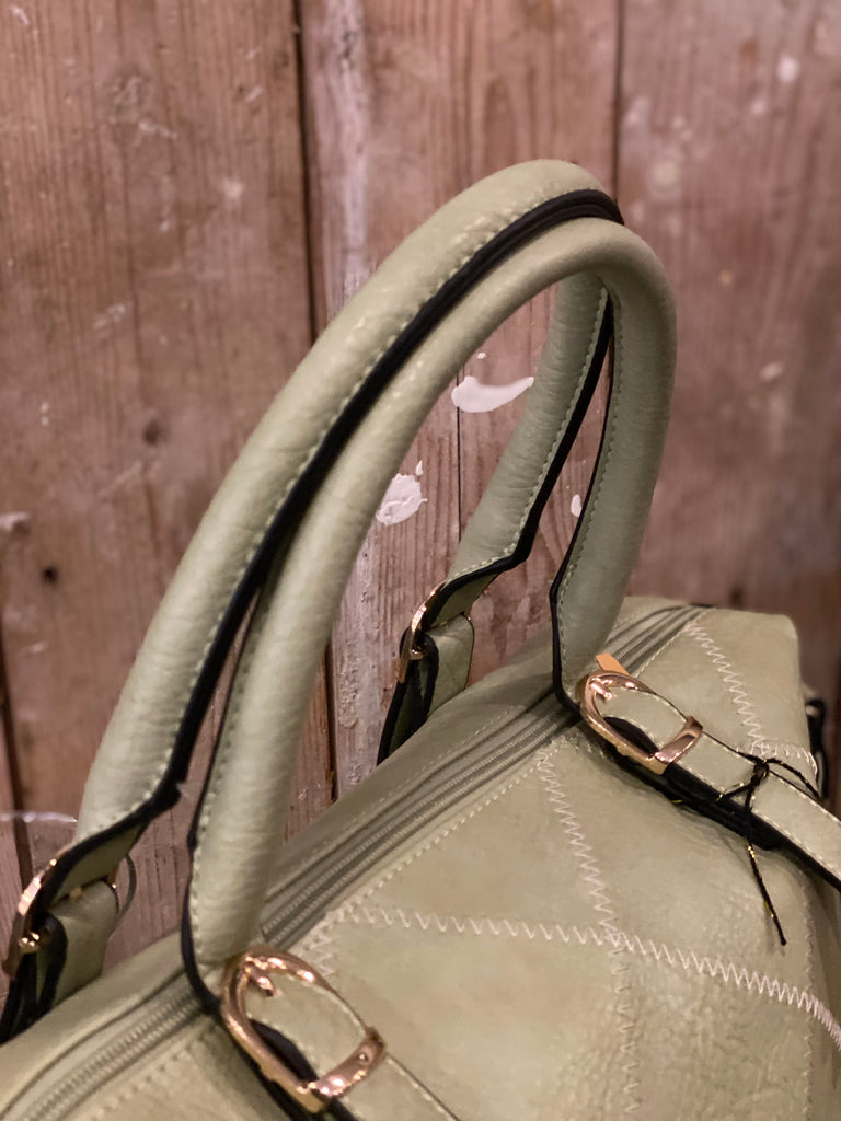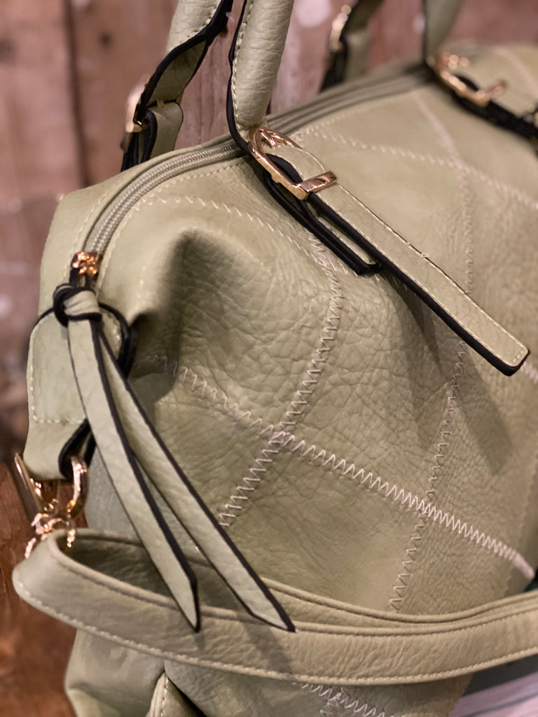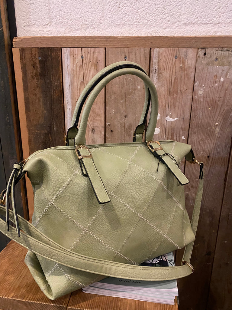 Zacht groen! De stiksels zijn ruitvormig.
