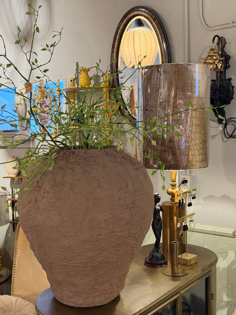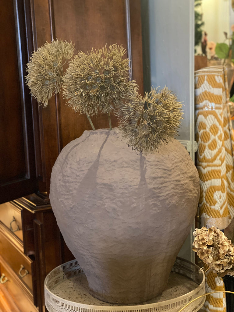Een mooie grote pot, deze oogt van papier-maché , maar dat is het niet.